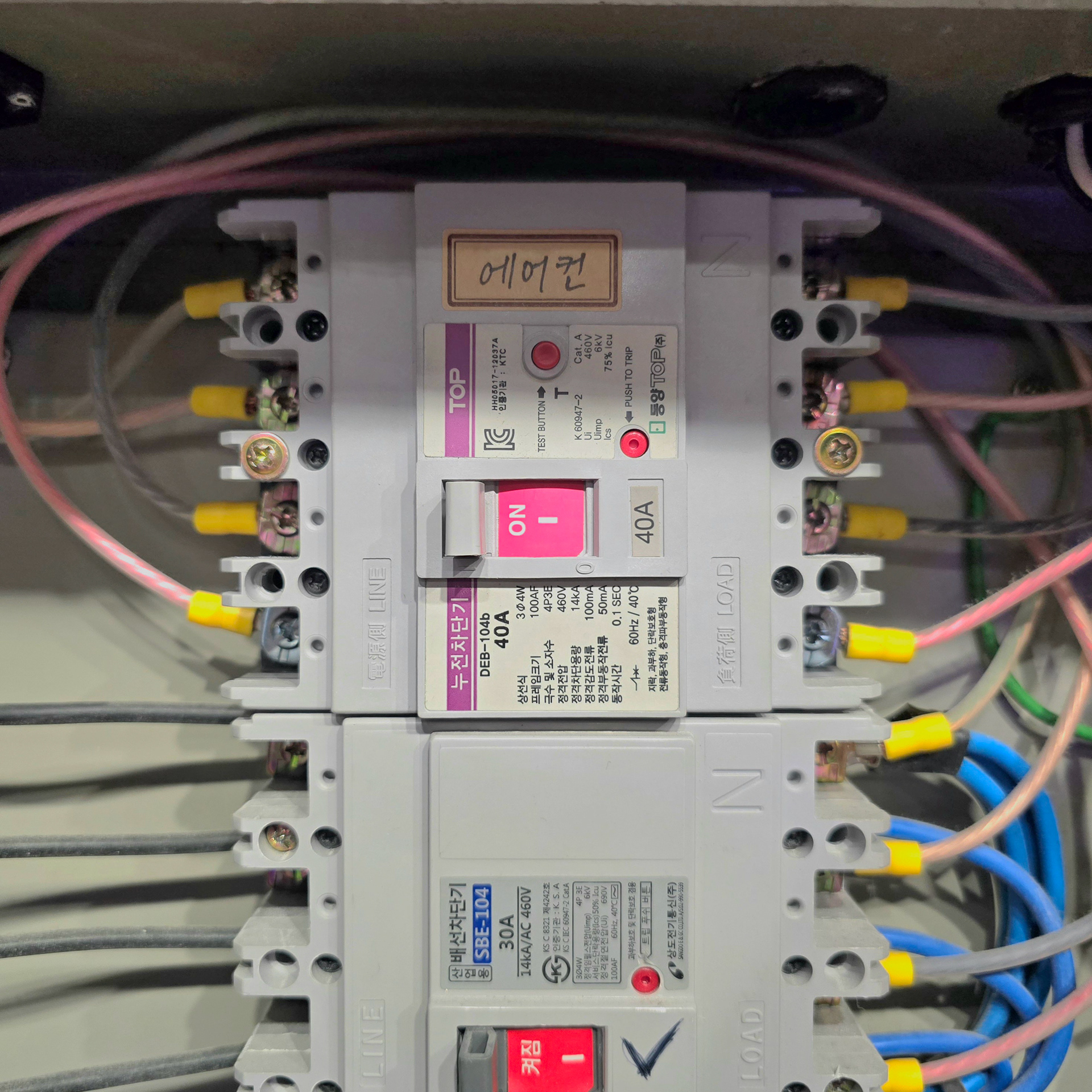 맨 위 '에어컨' 라벨이 붙어있는 차단기